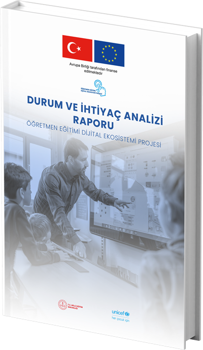MEB-UNICEF iş birliğinde ve Avrupa Birliğinin finansal desteği ile gerçekleştirilen “Öğretmen Eğitimi Dijital Ekosistemi” projesi ile öğretmenlerin dijital becerilerinin ve yetkinliklerinin artırılması hedeflenmiş olup proje kapsamında hazırlanan bu raporda, Türkiye’de tüm eğitim kademelerinde eğitim veren öğretmenlerin çağın gerektirdiği dijital yeterlikler için duydukları ihtiyaçlar ve sahip oldukları dijital becerilere ilişkin görüşlerine yer verilmiştir. Raporda Türk eğitim sistemine, öğretmen yeterliklerine, dijital yeterliklere, dünyada ve Türkiye’de mevcut duruma ait kısa bilgilere yer verildikten sonra öğretmen ihtiyaç analizinin metodolojisine, bulgulara, sonuç ve önerilere yönelik bilgiler verilmektedir.